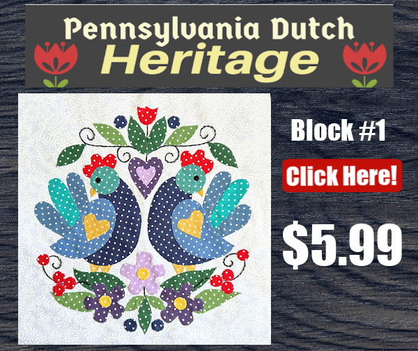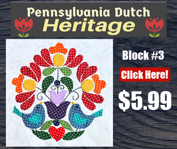 Jump in at any time! As a Pennsylvania Dutch Heritage Prime Member, for a one-time fee, you will never miss a pattern! You will have access to all previous Pennsylania Dutch Heritage block patterns and all new patterns from this series as they are released!